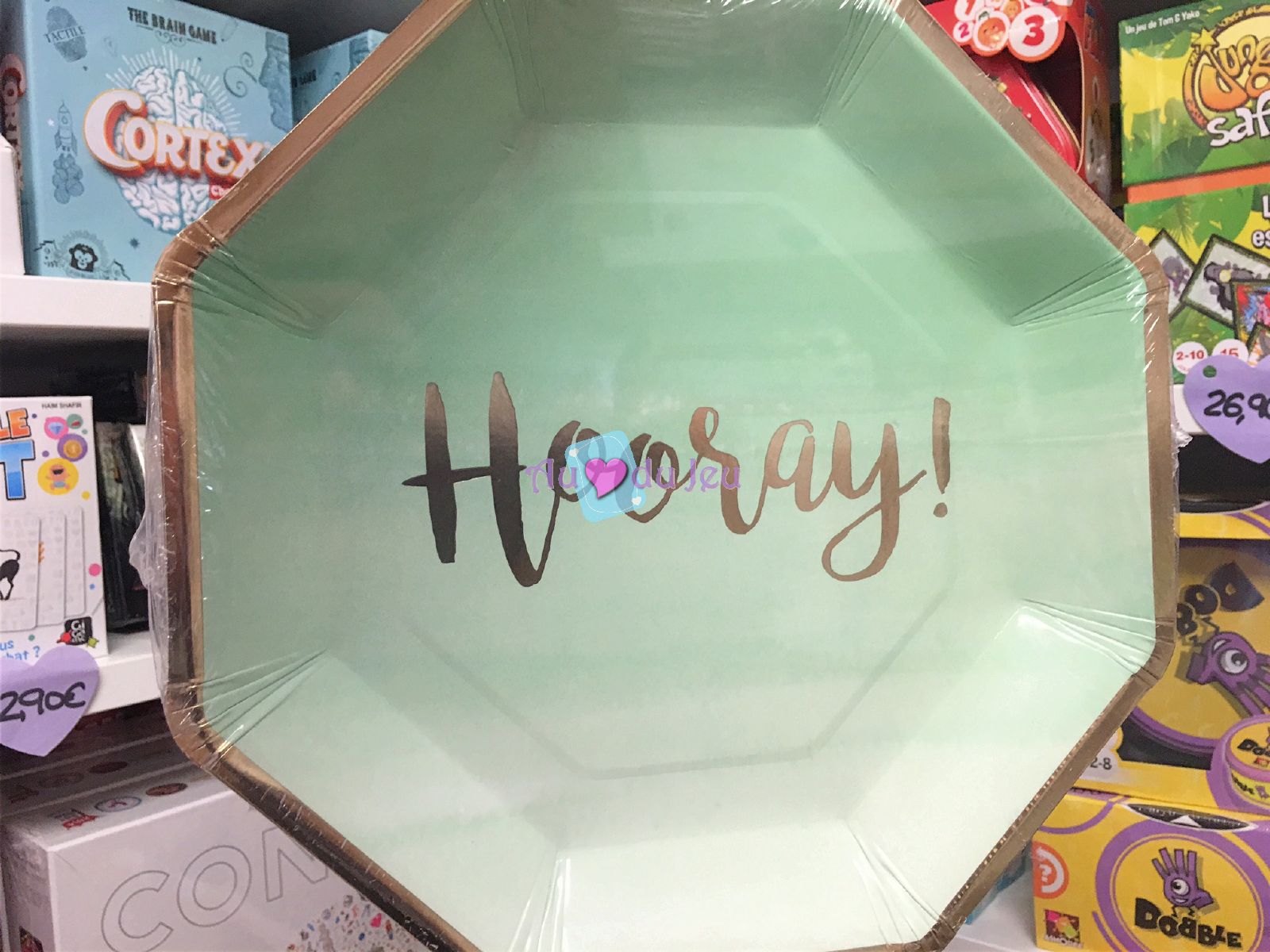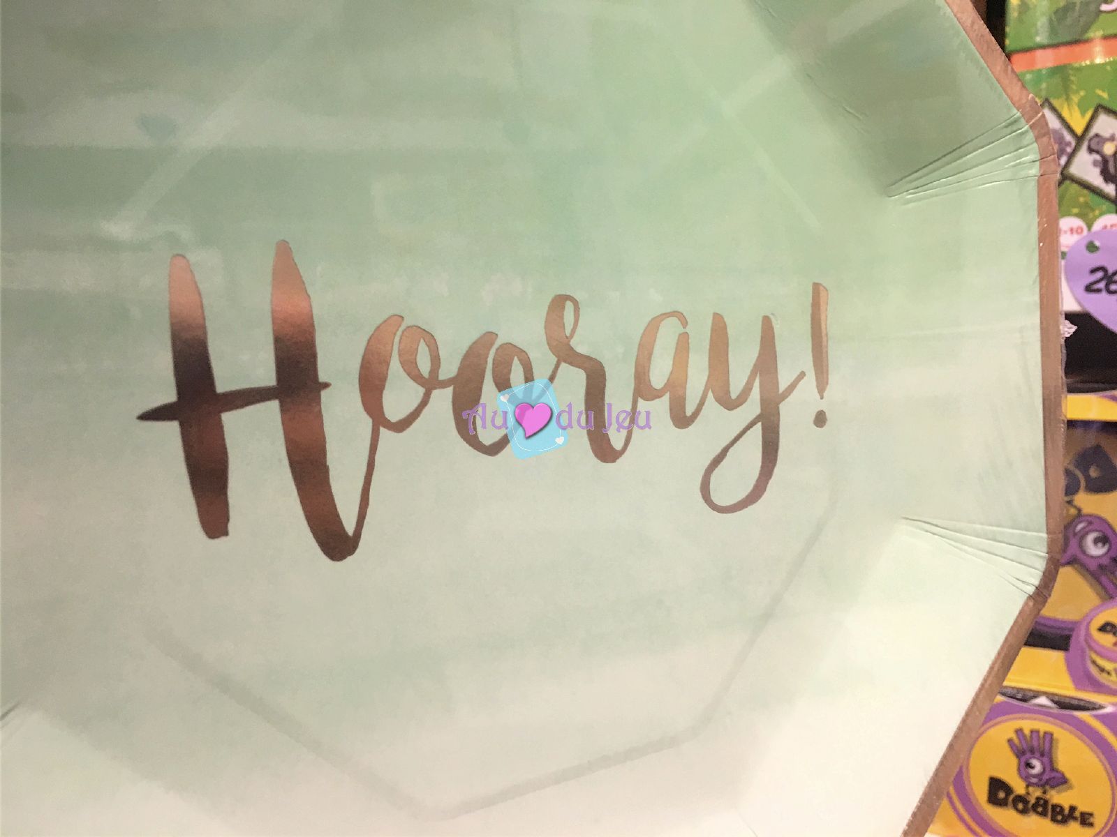 8 assiettes bleu pastel Hooray en papier de 25 cm, pour décorer votre table d’anniversaire, fête ou goûter.