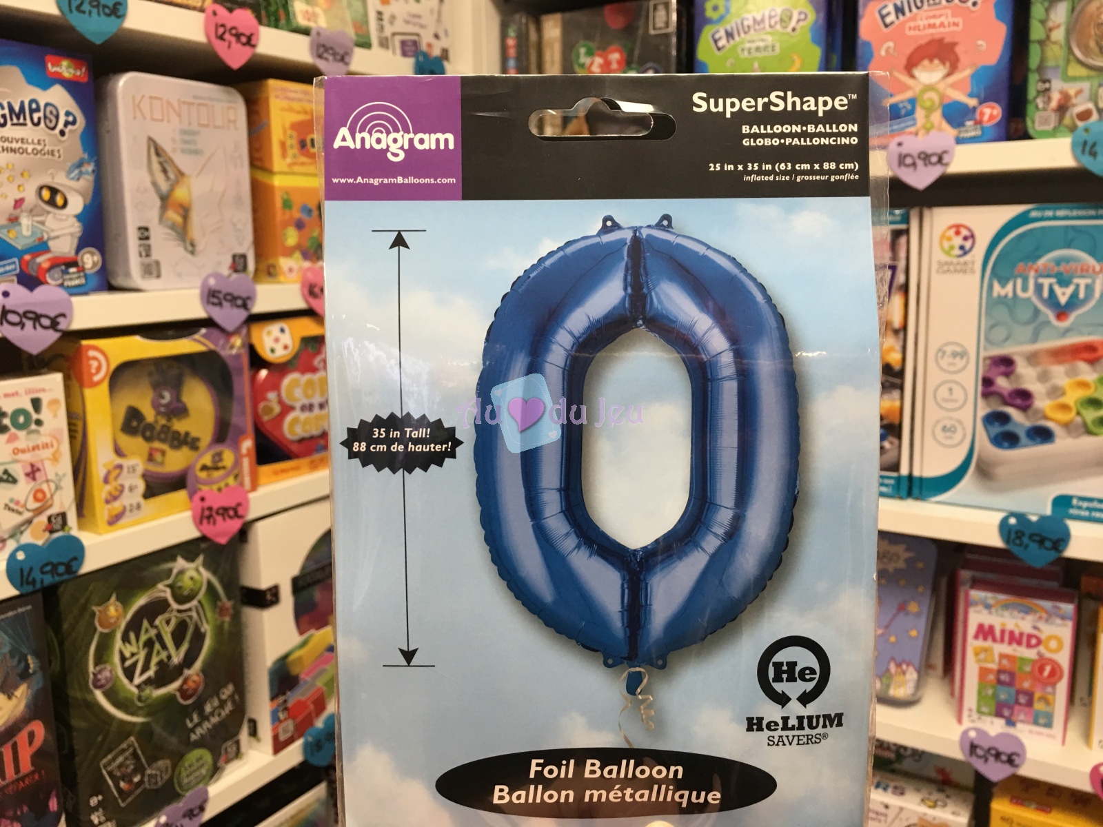 Ballon chiffre 0 en aluminium de couleur bleue et mesurant 86 cm. Le ballon est vendu non gonflé. Il peut être gonflé soit à l’hélium ou soit à l’air à l’aide d’une paille. La durée de flottaison lorsque le ballon est gonflé à l’hélium est de quelques jours.