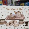 - Comprend une théière avec son couvercle, un plateau, quatre assiettes, quatre tasses et quatre sous tasses, tous décorés avec des motifs de chat.