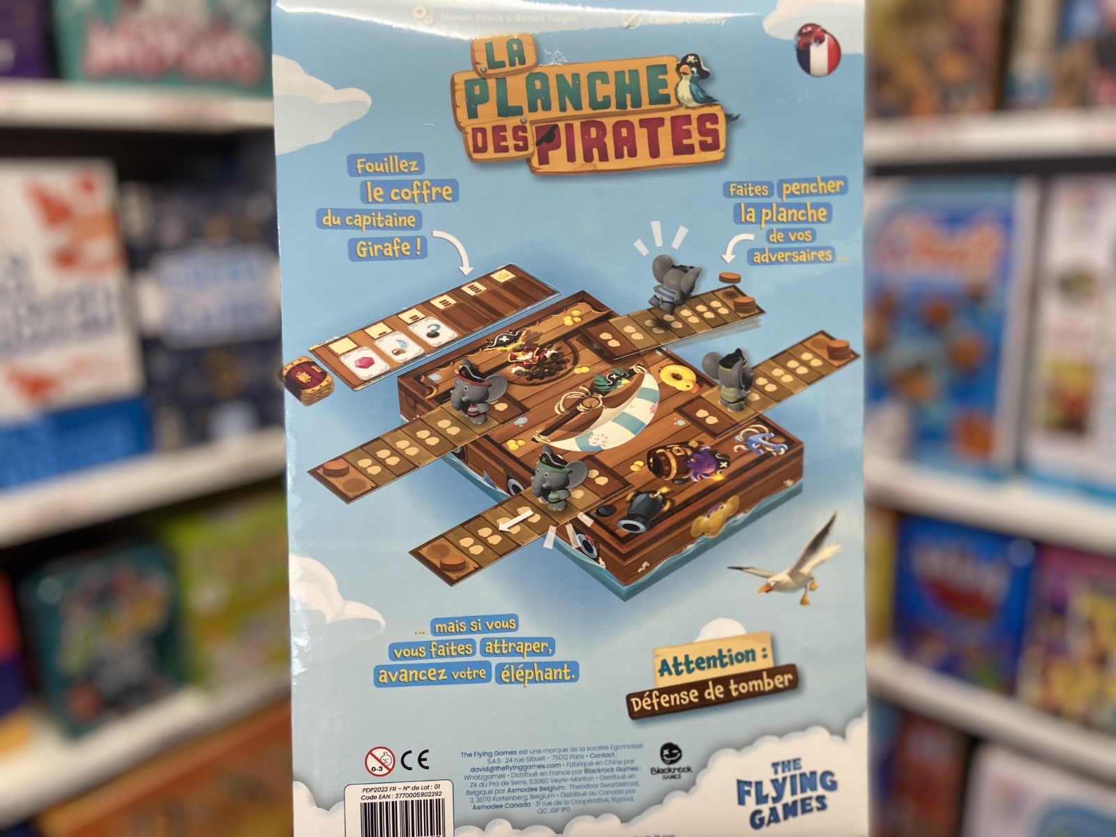 La Planche des Pirates est un jeu de société captivant qui vous plonge dans l’univers des pirates. Incarnez un éléphant pirate, tentez de dérober les trésors du capitaine Girafe et faites basculer vos adversaires de leur planche. Mais soyez prudent, car à chaque faux pas, vous avancez d’une case sur votre propre planche !