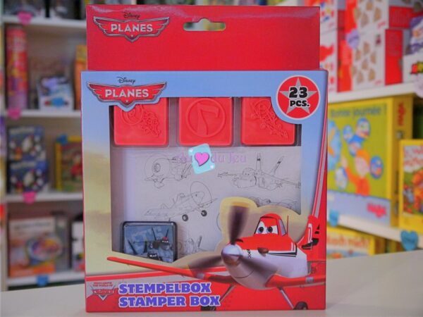 Coffret créatif comprenant des tampons et des autocollants sur le thème de Planes. Comprend tous les éléments pour recréer sur papier les formidables aventures de Dusty.